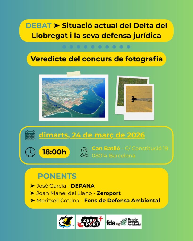 El Fons de Defensa Ambiental va participar el 24 de març en l’acte obert celebrat a Can Batlló (Barcelona) en suport a la campanya “Salvem el Delta del Llobregat”, impulsada per DEPANA per reforçar la defensa jurídica d’aquest espai natural.
